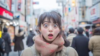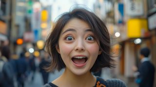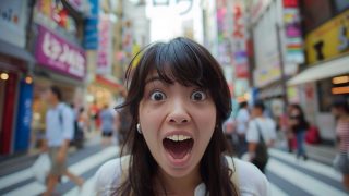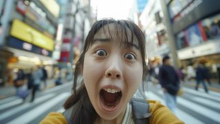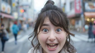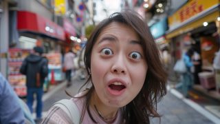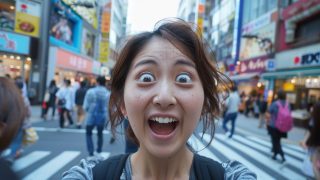 今日のテーマ 埼玉県 川口市の街中で、変顔をする女子